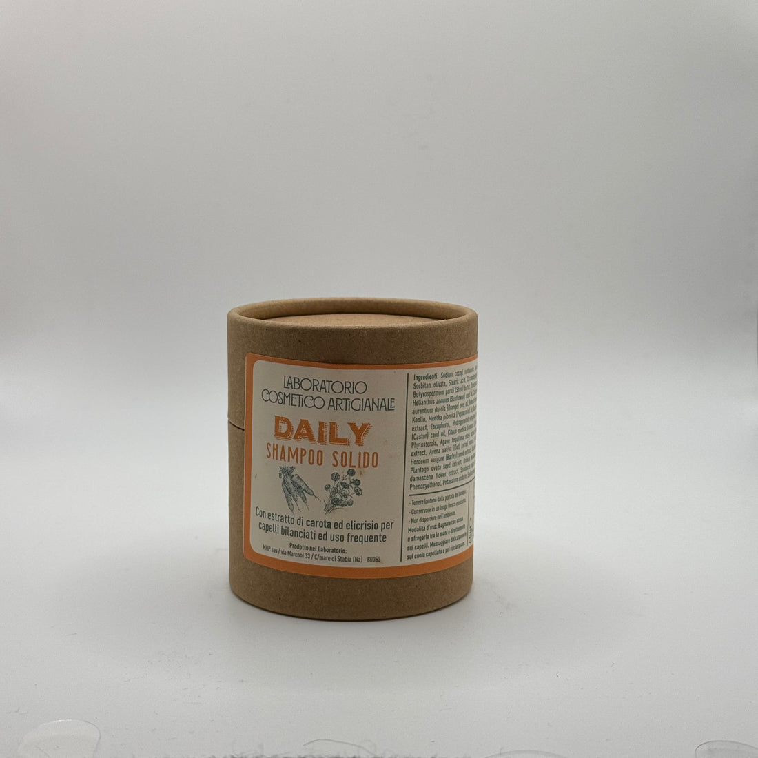 Shampoo solido preparato con estratto di carota ed elicrisio per capelli bilanciati ed uso frequente,...